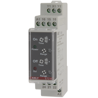 • 2 modes selectable via slide switch:  Model A (2C) for DPDT time-limiting output contacts and Mode B (1A1C) for SPDT instantaneous and time-limiting output contacts